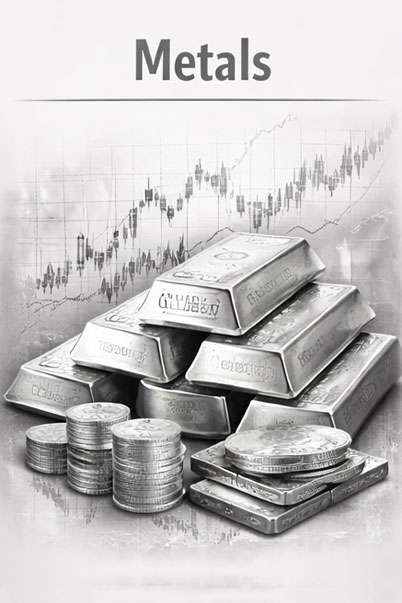 Trade popular precious and industrial metals like gold, silver, platinum, and copper. These assets are often used to hedge inflation, preserve value, and diversify against traditional market volatility.